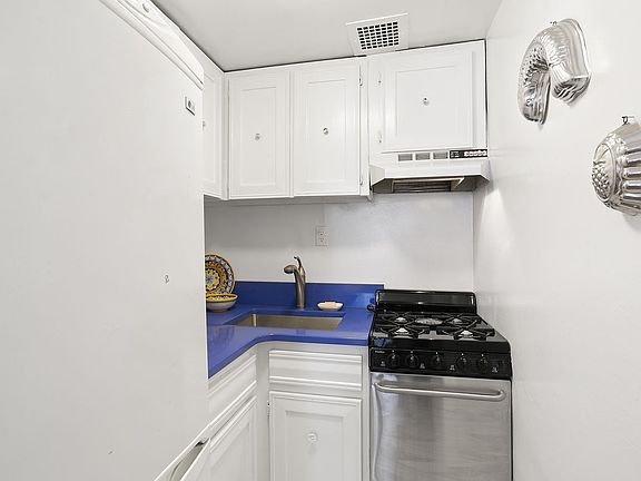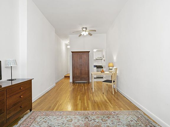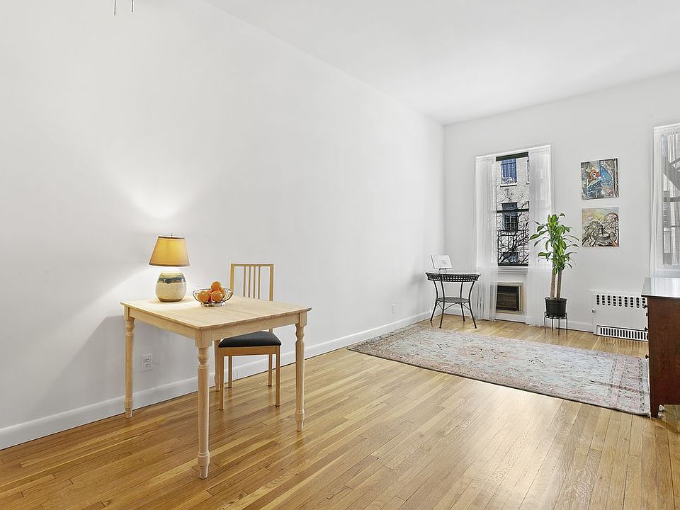 Studio/Atelier radiates prewar charm on stunning townhouse block, with Central Park steps from your doorstep! We have created the vision with our Team's interior designer for you to enjoy the lifestyle. Our best laid plans utilize the space to maximize and accommodate a living room, sleeping area, dining, entertaining and working. Classic Pre-War details abound: soaring 10' 6" ceilings, a step down entry foyer with closets and storage loft, and a double-length room with inviting sun-lit views, and beautiful hardwood oak floors throughout. A gem of a kitchen with cobalt blue counters, stainless steel sink, white wood cabinetry and full size refrigerator and stove. Subway tile bathroom with contrasting celadon/white tile flooring, white vanity and mirrored medicine cabinet. Conveniently located to accommodate all your needs: multiple subway and bus lines, top notch shopping: Trader Joe's, Whole Foods, D'Agostino and specialty grocers'. Plus an array of fine restaurants, offering indoor and outdoor dining. For the sports enthusiast, Central Park delivers: miles of biking, tennis, boating, idyllic areas to picnic, baseball fields, summer concerts and more! Boutique size building with 23 apartments, bike room, central laundry room and live-in superintendent. Ownership allows: pied-a-terre's, co-purchasing, parents buying for children (with board approval) & guarantors allowed. Pets OK!