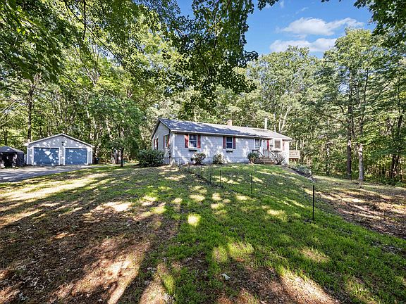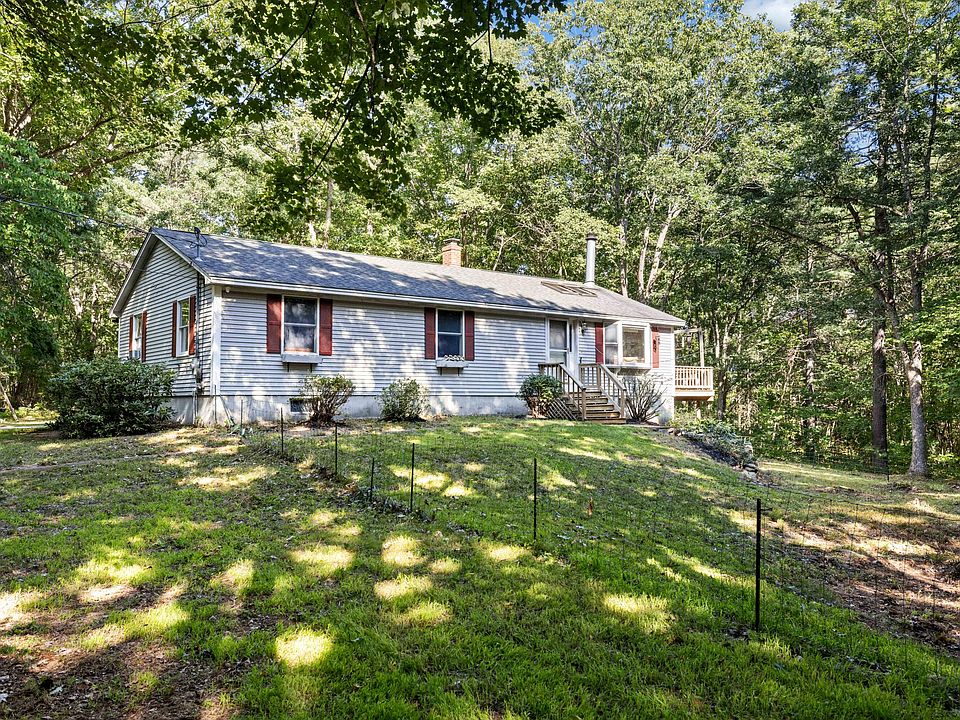 If privacy is what you seek, this 3.5 acre Ranch in West Kennebunk is your place! Quiet, peaceful setting with lots of sun and shade alike. Primary Bedroom on the first floor has a walk in closet and en suite bathroom. Basement is a walk out with double sliders and is finished with a large family room, a craft/ oversized storage closet and a big bedroom with a full bath as well. Upstairs is an open concept Kitchen with a dining area, and a living room which also has double sliders opening to the upper deck. Wood Fireplace ties it all together to create a warm, cozy living space. The Garage is wired for 220 and the shed has electricity as well.