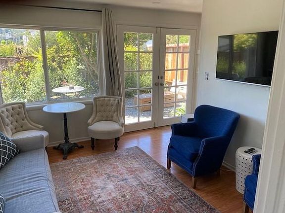 A captivating home with European charm and character located in Mill Valley's most convenient location set on a large private lot with enchanting garden. This one bed one bath ADU is super cute with separate, bed, bath, living and kitchen all in about 450sqft. Private gated yard exclusive for this unit with new 7x7 storage shed. The property has plenty off-street parking, shared laundry, close access to stores & restaurants, hiking, biking and the award-winning school district. Fully furnished with sonos, tv and apple tv, sheets, new duvet, new towels, new pillows. Turn key- hit the ground running Includes all utilities: garbage, landscaping and water, wifi included with maximum $300 monthly credit use for PGE. Pets negotiable. Owner is a licensed real estate broker. Lease Term min 1 month (30 days) Owner pays for water, garbage, landscaping, wifi.