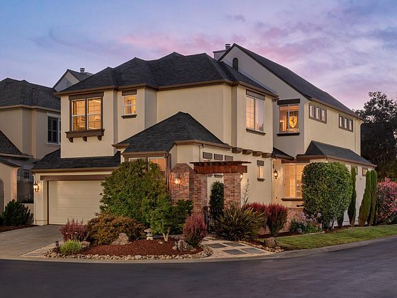 2 Wedgewood Court commands a prime corner lot and filled with premium upgrades, including a wine cellar with a Koolr cooling system for 600+ bottles, a brand-new Malarkey Legacy roof, exterior Kelly Moore DuraPoxy paint, stainless steel Jade, Thermador, and Bosch appliances. This popular Mayne plan by Christopherson Builders offers a flexible 5-bedroom layout, 2650sf, soaring two-story ceilings, wall of windows, loft/5th bedroom option, convenient upper laundry room, and 3 full bathrooms. The main level offers a bedroom and a full bathroom downstairs, family room, dining room, living room with dual sided fireplace. The wonderful natural light filters throughout due to the open corner lot location. The chef will absolutely love the kitchen with a center island, ample cabinet storage, granite countertops, limestone tile accents, designer lighting, and upgraded stainless steel appliances. The breakfast area and large bay window overlook the entertaining al fresco dining patio anchored by the handsome custom 14x14 Red Cedar pergola, two-tier fountain by A. Silvestri Co., and a bubbling 67 jet Lotus Bay Spa by Dimension One. Pride of ownership is evident throughout this stunning Adobe Creek home. Central to local wineries, vineyards, family farms, schools, shopping, and restaurants.