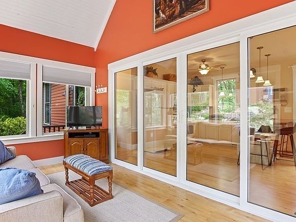 VACATION BLISS 40 MILES FROM BOSTON Summer Village is a private, gated, seasonal community with 2 heated pools (one for adults), hot tub, private beach on a 105-acre lake (fishing, boating, kayaking), clubhouse, restaurant/bar, full gym, volleyball, tennis, pickleball, playground, basketball, convenience store, fire pits, and more. 2 Whispering Pines has unmatched privacy. Built in 2007 w/high ceilings, gas stove, wash/dryer, 2 bedrooms, 2 ac units. This is NOT roughing it! Huge storage beneath the cottage and large unfinished storage space above. Fully painted and upgraded in 2022, the cottage has a new Char Broil gas grill and outdoor picnic area, deep woods on two sides, and the neighboring cottages are not intrusive. A great place to rest, rejuvenate, and make family memories, or rent it out by the week. Enjoy the summer of 2023, a glorious fall, and many years of enjoyment to come. Furnishings and golf cart are negotiable. Flexible closing. OCCUPANCY APRIL-OCT ONLY.