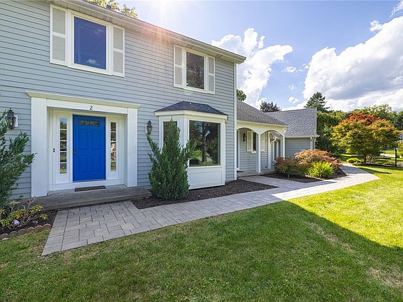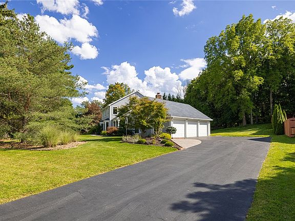 Welcome to a rare opportunity to own a beautifully maintained 5-bedroom, 2.5-bath colonial in the heart of Pittsford. Offering over 2,700 sq. ft., plus 600 sq. ft. in the finished basement for a total of 3,040 sq. ft. of living space, this home has been lovingly cared for by the same owner for more than 30 years, w/ character and warmth evident throughout. Step inside to a bright, functional layout featuring a fully custom renovated kitchen (2006) & an expanded pantry/laundry room (2007). Kitchen perfect for family meals & entertaining, w/ beautiful granite countertops, abundant storage, & a high-performance exhaust vent. The foyer & hallways showcase gleaming hardwood floors that extend throughout the home. The spacious primary suite includes a completely remodeled bathroom (2008), while the finished basement—featuring brand-new carpet (2025) and a large cedar closet—offers abundant space for work, play, or relaxation. A first-floor room provides flexible use as a home office or in-law suite, adding to the home’s versatility. Significant system upgrades provide peace of mind: high-efficiency furnace and commercial-grade AC (2010), new windows (2010), water heater (2020), and a full tear-off roof replacement with GAF materials (2019). Exterior improvements include new garage doors, Trex deck, fresh exterior paint, paver walkway, and a French drain system. Radon testing was recently completed with excellent results. A spacious 3-car garage adds convenience and extra storage. The home sits on a picturesque, park-like lot with mature landscaping and a private backyard retreat. Outdoor enthusiasts will enjoy nearby walking trails, Thornell Park, and easy access to local shops and restaurants. Thornell Road Elementary is easily walkable, making this location ideal for families combining comfort, convenience, and outdoor enjoyment in one of Pittsford’s most desirable neighborhoods. Truly a move-in-ready home, meticulously cared for, with a thoughtful layout designed for entertaining, family living, & everyday comfort. Don’t miss this opportunity! Open House: Saturday 11a–12p & Sunday 1p–2p. Delayed Negotiation: Tuesday, September 9 @ 2 PM