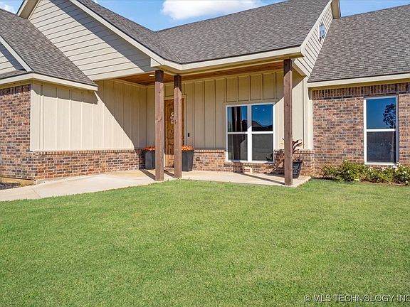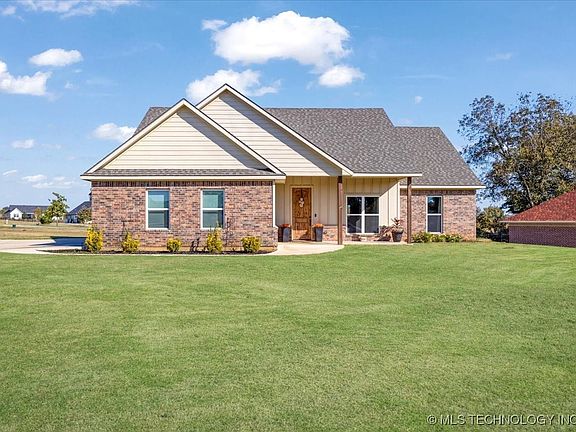 Welcome to this beautifully crafted 3-bedroom, 2-bath home with a 2-car garage, built in 2024 and designed for modern living with timeless style. Step inside to discover an open-concept layout featuring a gorgeous fireplace, exposed wood beams, crown molding, and granite countertops throughout. The kitchen offers a walk-in pantry and plenty of space to entertain, while the spacious bedrooms include large walk-in closets for ample storage.