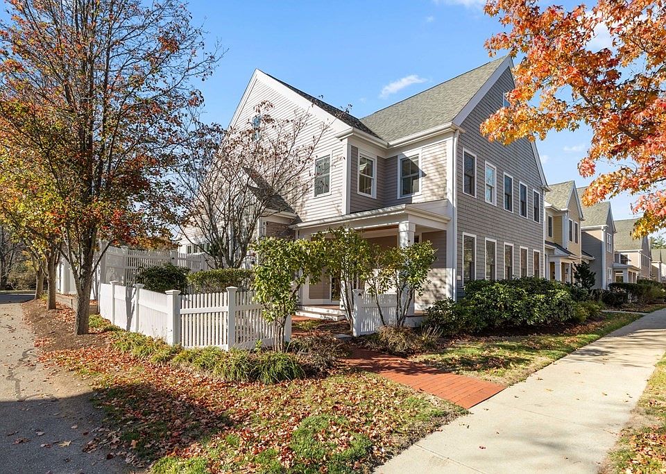 Sought-after Bailey Model at Desirable Red Mill Village Active Adult Community. Coveted End Unit overlooking beautiful Village Green, conservation/pond, Gardens, Meeting House, Trails & near Pool. Custom brick patterned pavers lead to a relaxing Front Porch of this well-appointed Open Concept Floor Plan highlighted by 2 story foyer, natural light filled dining room & spacious living rm w/tall transom windows, custom built-ins flanking mantle atop the gas Fireplace. Kitchen adorned by stainless steel appl, honed granite c-tops, backsplash, center island & abundance of cabinetry. 1st floor also offers large office w/French doors, laundry rm, 1/2 bath, coat closet & a large Primary En-Suite with w-i-closet, spacious bath w/jetted tub, shower & dbl vanity. Stunning staircase leads to oversized loft – ideal for family rm/2nd office. Guest bath & bedroom complete the top floor. Addt'l Amenities of this model: 2 Car garage & wrap around Private Fenced yard/patio outlined by gorgeous plantings