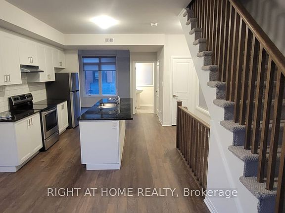 Modern living townhouse beside Grand River! The perfect place for outdoor activities. Close to walking trails. Featuring a bright and open-concept main floor living area is open to the balcony. The kitchen has a large counter space and an island with 4 seating. A spacious dining area and powder room on the main floor. The 2nd floor includes two bedrooms. The primary bedroom has 2 closets and a 3pc ensuite. Bedroom #2 with a second balcony. 2nd floor has another 3pc ensuite. Over 1181 sqft, parking for 2, stainless steel appliances, visitor parking, close to downtown, restaurants, schools, shopping, amenities and highway 403.