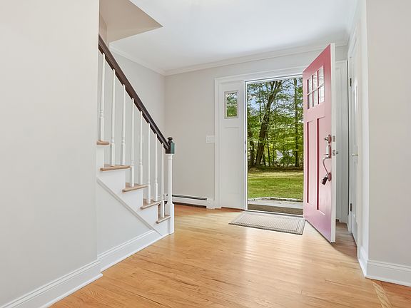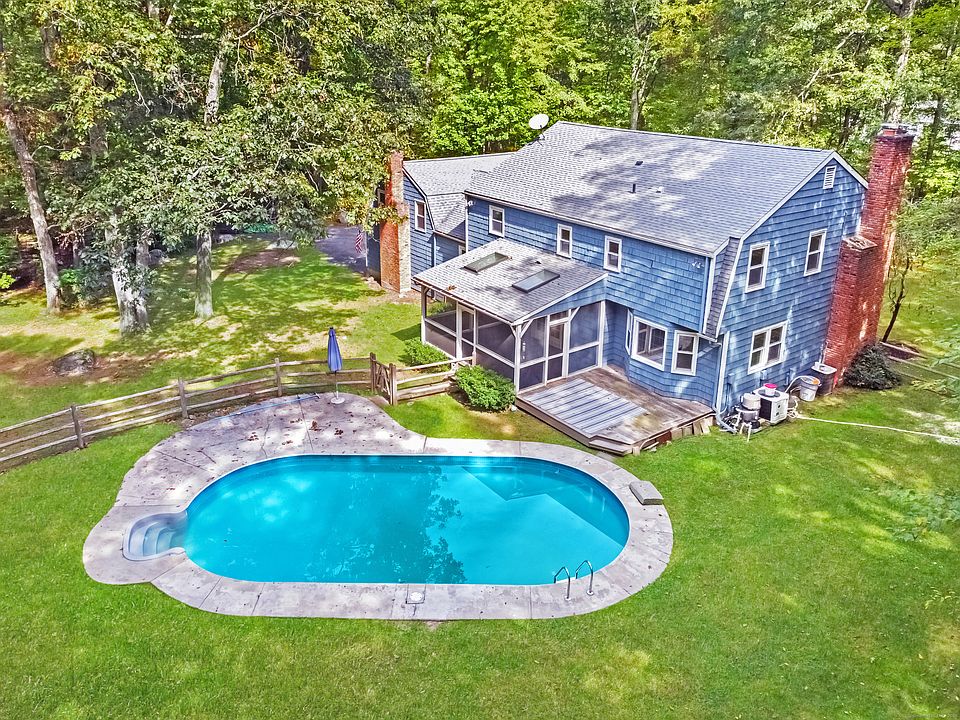 This beautifully appointed 3,096 square foot Colonial with 4 bedrooms and 2.5 baths, set on 3.46 level acres in one of Newtown's most desirable locations. From the moment you arrive, you'll be drawn to the serene setting and inviting curb appeal. Once inside, the home continues to impress. The heart of the home is the chef's kitchen, featuring a SubZero refrigerator, Wolf cooktop, GE double wall oven, granite-topped island, and cabinets galore. The kitchen opens to casual dining and entertaining spaces, with hardwood floors flowing throughout. Gather in the elegant living room with its cozy fireplace, host guests in the formal dining room, or relax in the walk-up family room where a second fireplace creates the perfect ambiance. Upstairs, the spacious primary suite offers a welcoming retreat with its own fireplace and a full bath featuring dual sinks and a shower. Three additional bedrooms are generously sized, and one provides access to a walk-up attic - ideal for extra storage. The finished 600 square foot lower level is ideal for a media room, playroom, or home gym. Step outside to enjoy the level backyard, vinyl inground pool, and a screened-in porch - great for summer evenings - plus a deck for convenient access to the yard. Additional highlights include three fireplaces, central A/C, walk up attic and hardwood floors throughout. This home blends comfort, function, and charm - ready to welcome its next owner. Schedule your showing today and make this home yours!
