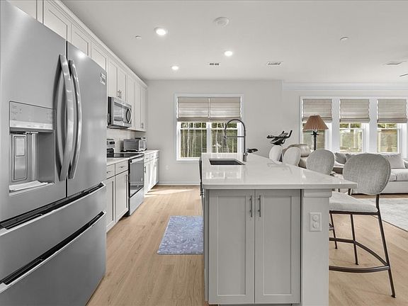 Welcome to this sun-filled top-floor corner condo unit at Winslow Point, built in 2024 and thoughtfully upgraded with over $60,000 in enhancements. Offering 1,559 sq ft, 2 bedrooms, 2 baths, a private office, balcony, and two deeded garage spaces. A rare opportunity to own a like-new unit with an open layout that includes a designer kitchen with quartz counters, upgraded cabinets and backsplash, stainless steel appliances, flowing into a bright dining and living area. The primary suite offers a bath with a double vanity sink and a walk-in closet equipped with a Closets By Design custom closet system, while the sizable second bedroom and full bath provide flexibility. Hardwood floors, crown molding, in-unit laundry, and luxury linen window treatments add comfort and style. Winslow Point residents enjoy landscaped grounds, scenic paths, seating areas, and a patio with grills and a pergola, all close to the Grafton MBTA for effortless commuting.
