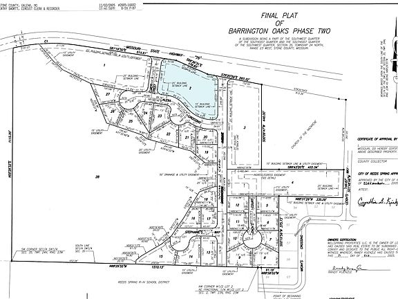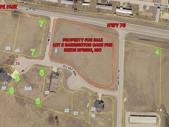All utilities in place on this 1.6 acre +/- nearly level lot with frontage on Missouri Highway 76. The property is surrounded by streets maintained by City of Reeds Spring. Lot 2 of Barrington Oaks Ph 2 is located at the corner of Wolves Ln which provides access to Reeds Spring Schools. Property can be used for commercial or residential purposes with approval by City of Reeds Spring. This property offers many potential options.