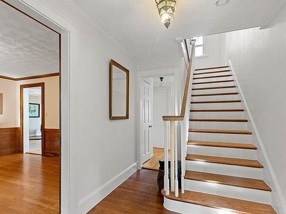 This enchanting 1929 Colonial is perched on a large, beautifully landscaped lot. Quality construction and period details such as heavy wood doors and inset glass cabinets. This pristine home has a renovated large open sunny eat in kitchen with granite counters and plenty of space to organize. The kitchen now includes a bay window with sitting area and a wood stove, making this room a great place to linger. The living room, flanked by large windows has a Vermont Castings fireplace as a warm focal point. On the second floor there are four nicely sized bedrooms with wood floors and two full bathrooms. This home also has an enormous attic with great ceiling height offering expansion potential. The lower level has an attached two car garage and extra room for storage. In the yard there are blooming perennial gardens, flat yard spaces, a patio, garden area and an outdoor stone fireplace to enjoy. In the Montserrat neighborhood, near shops, beaches, commuter rail and routes!