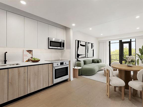 This elegantly designed 603 square foot one-bedroom, one-bathroom condominium residence offers southeast exposures. Each residence features floor-to-ceiling oversized windows, wide-plank white oak flooring throughout, recessed lighting, high ceilings above 8', and an in-unit washer and dryer.
