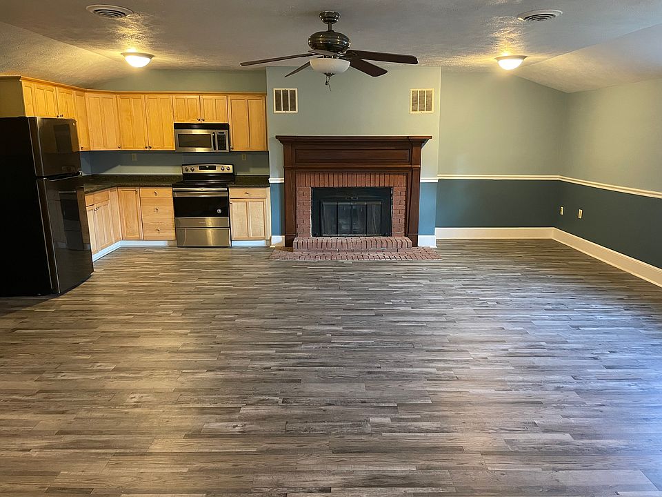 Beautiful, newly renovated 1,400 sq ft 3 bedroom, 1 bathroom for rent in Clifton, Ohio (3 miles from Yellow Springs or Cedarville, just 1 block walk to hiking in beautiful Clifton Gorge, with the Clifton Opera House across the street). The beautiful original hardwood mantle on the wood burning fireplace is the centerpiece of the large open concept kitchen/living room, with updated stainless steel appliances, tons of cabinets and counter space, and new minisplit for efficient heating and cooling. This back unit of side-by-side duplex is tucked-away and private with a spacious patio. Other side of duplex is part-time owner-occupied and part-time AirBNB while owner renovates their house next door. Ample street parking as well as off-street lot parking available.