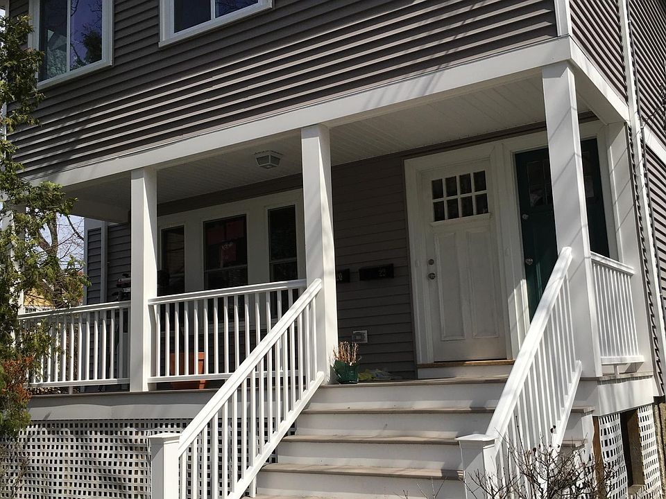 Luxurious, renovated 4-BR 3-BA ground floor apartment in 2-family home. Gleaming hardwood floors, energy-efficient windows, blown-in insulation, elegant interior woodwork and finishes. Chef's kitchen with gas range, microwave, hood, dishwasher, disposal, large fridge, built-in bookcase, and all-wood cabinets. Granite counter-tops, glass back-splash and large windows add to style. Master bedroom has en-suite private full bathroom, and large walk-in closet. Other bedrooms are ample size with large closets. Living room has a working fireplace. Dining room is elegantly painted with beautiful chandelier. Laundry room with hook-ups for washer and dryer and in the unit. Extra basement storage is available. Internet connection and cable TV hookups in every room. Parking off-street for 2 cars. Private yard enclosed with hedges. Schools are nearby. Public transportation one block away on Trapelo Rd. Stores restaurants walking distance. Close to Belmont Center and Cushing Square