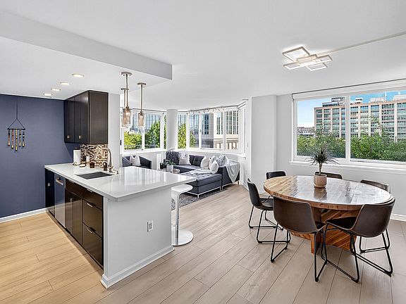 Contemporary lightingOpen-concept kitchenRiver-facing balconyLuxurious homeHeated towel barSleek and contemporary bathroomsFlooded with sunlight
