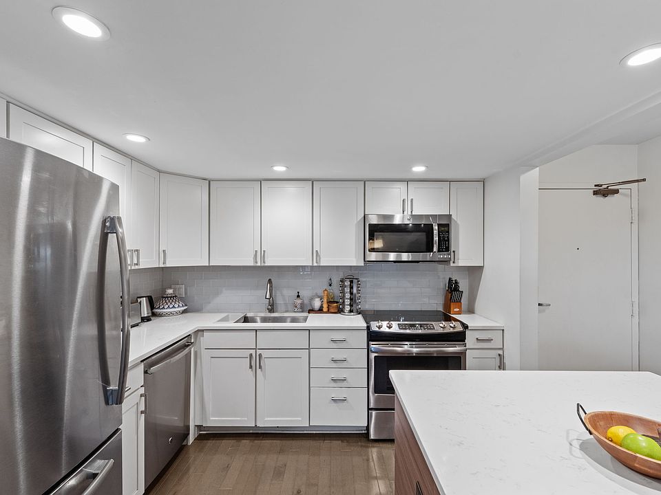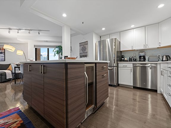 Hardwood flooringCustom islandIn-unit laundryStainless steel appliancesQuartz countersWalk in closetWine fridge