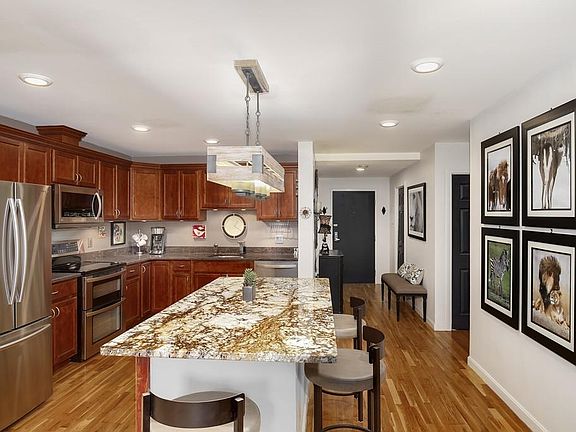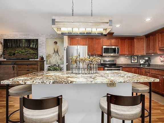 - Kit Dscrp: Flooring - Hardwood, Countertops - Stone/Granite/Solid, Breakfast Bar / Nook, Recessed Lighting, Stainless Steel Appliances, Cabinets - Upgraded, Kitchen Island, Countertops - Upgraded, Open Floor Plan
