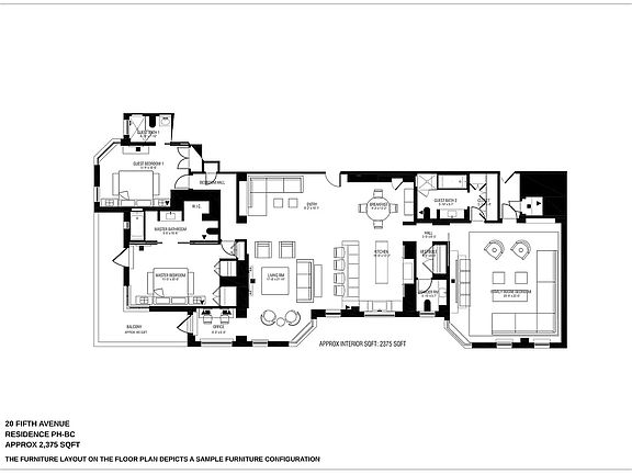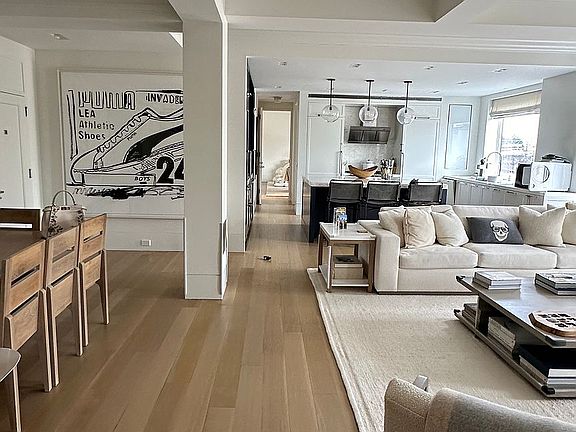 An Exquisite Greenwich Village Penthouse Available for Rent at 20 Fifth Avenue Perfectly positioned at the corner of Fifth Avenue and 9th Street, this rare offering presents a meticulously renovated unfurnished three-bedroom penthouse that masterfully blends timeless elegance with modern sophistication. Encompassing approximately 2,375 interior square feet, the residence is crowned by sweeping city and sky views and enhanced by a gracious L-shaped terrace, ideal for outdoor living and entertaining. Penthouse BC boasts a remarkable flow, with a grand open-plan living room, dining area, and chef's kitchen that seamlessly connect to one another. Nine-foot ceilings, a wood-burning fireplace, and walls of oversized windows create a luminous, airy ambiance throughout. Beautiful hardwood and stone floors, custom millwork, and a striking powder room off the main living area add to the refined details. A thoughtfully designed home office sits just beyond the living room, opening directly onto the terrace with views facing North, Fifth Avenue East and Southa perfect setting for work or quiet retreat. A masterpiece of design and functionality, the custom kitchen is outfitted with top-of-the-line appliances, including a Gaggenau 36" refrigerator, matching 36" freezer, and professional ice maker; a Viking oven with four burners and grill cooktop; two Miele dishwashers; and a microwave drawer. A dramatic stone island anchors the space, offering both abundant storage and seating for casual dining. Completing the kitchen is a beautifully integrated bar area with dual wine refrigerators and Dornbracht fixtures, elevating the space to true luxury. The residence offers three generously scaled bedrooms, each with an en-suite bath. The primary suite is a private sanctuary featuring a spacious sitting area, walk-in closet, and a gas fireplace, creating an atmosphere of warmth and refined comfort. The home includes a private storage room (13 x 18 approx.) which includes a full-size washer/dryer. Residents of 20 Fifth Avenue enjoy the services of a 24-hour doorman and live-in resident manager, ensuring convenience and peace of mind. Pets are welcome, and pied-a-terres are permitted. One-year lease minimum. This exceptional offering is more than just a homeit is an opportunity to experience one of Greenwich Village's most prestigious addresses. Contact us today to arrange a private viewing and discover downtown living at its finest. Disclaimer: New photos coming soon. These images represent different stages of the renovationmaterials and finishes may vary, but they accurately reflect the space. The apartment will be rented unfurnished. Floor plan reflects a sample furniture layout. REQUIRED FEES Application Fee: $20 per leaseholder/guarantor. (non-refundable) Lease Signing: First months rent and one months security deposit due upon application approval. Broker Fee: None Renters Insurance- renters must maintain an active policy. Monthly Fees Utilities: Tenants are responsible for electricity, cable, and internet (based on usage) Included: Heat and hot water