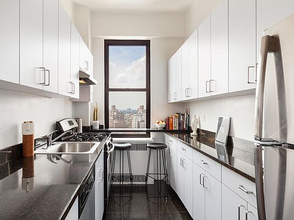 Chic Greenwich Village 1BR w Terrace This perfect one bedroom has the best of NYC living- expansive North and West city views from every room, grand over-sized proportions and private outdoor space. Located on the 17th floor, a proper foyer entry greets you and opens to a grand dining and living room. The dimensions are enormous with room for formal dining and even a built-in desk space along the rear wall. The over-sized living room is highlighted by a working wood-burning fireplace, as well as amazing light through large casement windows and custom built-in shelving. Off the living room is access to the private terrace with 180 degree city views. The galley kitchen in clean grey cabinetry, deep marble counter-tops and stainless steel appliances even has a breakfast counter overlooking the city! The master bedroom entered from a separate hall, is large with three exposures and perfect western light and views all day. The windowed bathroom features clean white subway tiling and marble vanity. There are two closets in the master, a hall linen closet, an entry closet and walk-in closet off the foyer for excellent storage options! 20 Fifth Avenue is located in landmarked Greenwich Village just 1 block from the iconic Washington Square Park, convenient to Cardozo Law School, NYU and Parson's School of Design. This luxury rental building has full time doorman, live-in super and on-site laundry. Easy transportation options include Union Square Subway express trains, West 4th St Station - ACE & BDFM and the nearby 8th Street Station - NRW lines.