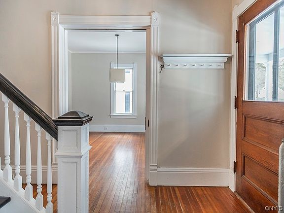 Quintessential Cazenovia Colonial. Front Porch perfect for rocking chair sitting, Lemonde sipping and parade watching. The minute you walk in the front door you are greeted by a cascading staircase, lovely hardwood floors and detailed moldings. The front hallway is flanked by a dining room to the right and formal living room to the left. The dining room opens to a beautiful family room highlighted with a banquet of windows and wood burning fireplace. Beyond the living room is an office/den w/ built-in bookshelf and a hidden half bath. The updated kitchen overlooks the spacious fully fenced backyard, large, screened porch and patio. The eat in kitchen includes soft close white cabinetry, gas range, dishwasher, walk in pantry and laundry area. There is a cool back staircase that leads to one of two second floor full baths There are also 4 large bedrooms on this floor, the primary bedroom has a large Walkin closet. Updates include newer roofs, 15 new windows, new water and sewer lines, Hot water heater, spray foam insulation in the attic, new front porch and fenced yard. Oversized two car garage and walking distance to all that is CAZ .....makes this the perfect village home!