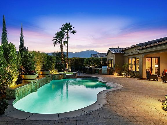 Stunning Toll Brothers Amalfi Floor Plan in the Heart of Rancho Mirage!!Experience elevated, sophisticated living in this beautifully crafted 4-bed, 5-bath Toll Brothers home, featuring a private casita ideal for guests or a dedicated home office. This residence blends luxury, comfort, and effortless indoor/outdoor living. Step into the dramatic great room with its soaring ceilings and impressive 20-foot pocketing glass door that opens completely to the backyard--creating seamless flow for entertaining family and friends. The expansive south-facing yard showcases a sparkling saltwater pool and spa with cascading waterfall, beautifully manicured landscaping, and breathtaking mountain views. Enjoy the built-in BBQ and spacious covered patio equipped with motorized awning, misters and heaters for year-round comfort.Inside, the well-appointed kitchen features KitchenAid appliances, granite countertops, a large island, and an inviting eat-in area. The formal dining room offers the perfect backdrop for memorable gatherings, while the bonus/family room provides a cozy retreat for reading or catching your favorite show.Designed with privacy in mind, the floor plan separates the guest spaces from the luxurious primary suite. This serene, light-filled retreat includes dual vanities, a large walk-in shower, a soaking tub, and two walk-in closets.Additional upgrades include custom Hunter Douglas window treatments, surround sound, reverse osmosis water filtration, hot water circulation pump, epoxy-finished floors and built-in cabinetry in the 3-car garage, and renovated casita.A remarkable home offering resort-style living, refined finishes, and the best of indoor/outdoor design--all within Escala, one of Rancho Mirage's most desirable communities. Call for your private tour today!