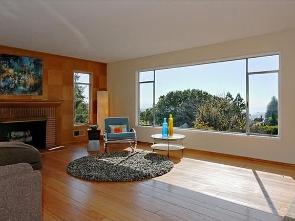 Kensington jewel with Golden Gate and Mt. Tam view from entire west side of house. Dining area opens to deck. Family room opens to luscious low maintenance garden and mature fruit trees. Laundry room, large basement with workbench; two car attached garage opens to kitchen. Outside Blakemont Slide.
