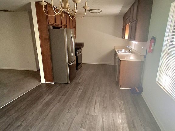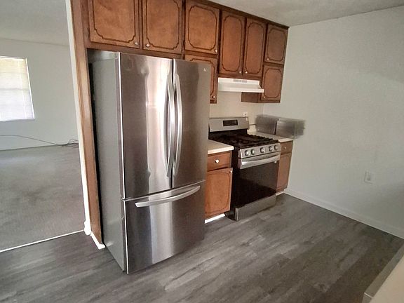 Stainless steel appliancesLaminate flooringPlush grey carpet
