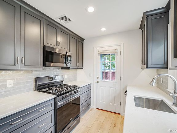 This charming 3-bedroom, 1-bath home is move in ready and perfectly situated in the heart of Lake Grove Village. Step inside to find a bright living room, refinished hardwood floors, and a freshly painted interior that feels crisp and inviting. The updated kitchen features stainless steel appliances, gas cooking, and a dining area ideal for everyday meals or gatherings. The home also boasts a full finished basement with an outside entrance, offering versatile space for recreation, a home office, or extended living. Additional highlights include gas heat, attic with pull-down stairs for storage, and a 1-car attached garage. Set on a lovely interior block, this property offers both convenience and comfort, just minutes from shopping, hospitals, major highways, and all that Long Island has to offer. Located in the desirable Middle Country School District, this home is an exceptional opportunity in a central location.