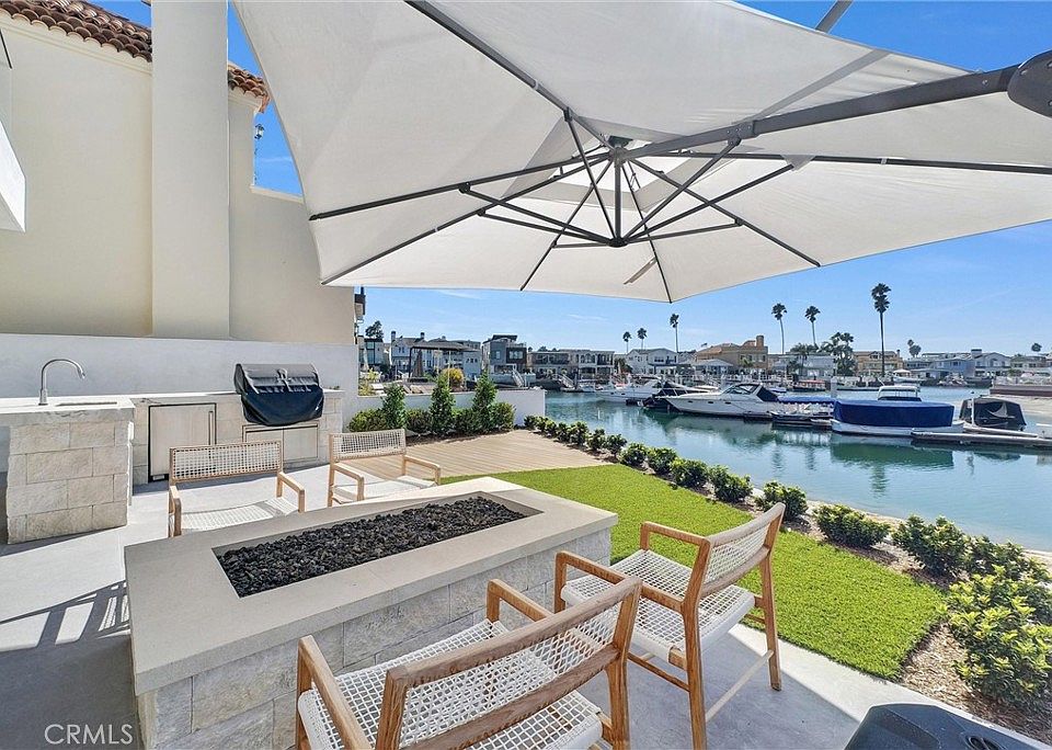 Situated on an oversized 3,888 sq. ft. lot on the water with a private boat dock, this smart, tech-forward home offers approx. 3,753 sq. ft. of interior living space and over 5,000 sq. ft. total, including garage and outdoor areas. The open layout features 4 bedrooms, 4.5 bathrooms, and a private rooftop retreat with an additional bed and bath — ideal for entertaining or enjoying panoramic Catalina Island and ocean views.