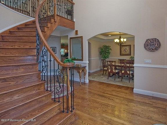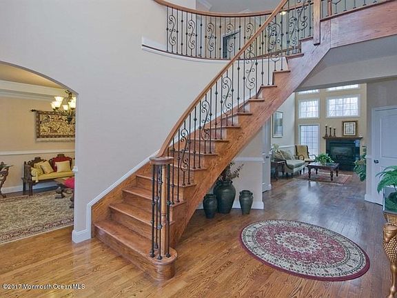 Young custom built ~4000SF 5 BDR 4.5 BA w/ walk out bsmnt & entrance from garage, daylight windows ~1 acre.Grand 2 story foyer,featuring spiral staircase w/wrought iron railings,Hardwood floors thru-out,Deco moldings,Tray ceiling,back staircase,recessed lights & chandliers. 1st Flr:Formal L/R & D/R,2 story Great Rm w/wall of windows,Gas fireplace,guest bdrm w/private full bath,Powder Rm, & laundry Rm w/ utility sink.Gourmet Center Island social Kitchen,cherry cabinets,granite c/tops,full SS appl pkge,walk in Pantry & extra chef's kitchen.2nd flr:huge MBR suite;separate sitting rm,2 WI closets,luxury MBA w/2 vanities,glass shower,whirlpool tub. BDRM w/ private bath & 2 other spacious bdrms.Walk up floored attic. 2 zone HVAC.Walk to shopping,NYC Bus.Close to train.Great Marlboro School.