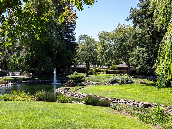 Refined single-level living in the heart of Creekside Oaks. This elegantly remodeled home blends sophistication, comfort, and convenience in one of Los Altos most sought-after gated communities. The chefs kitchen features Taj Mahal quartzite countertops, Subzero refrigerator, stainless appliances, double ovens, and a gas cooktop with hood, plus a bay-window breakfast area. Light-filled living room w/gas fireplace, & large picture windows with stunning green landscaped views. The regal dining room offers tray ceiling, built-in cabinetry, and seamless access to the patio. The serene primary suite includes a spa-inspired bath with frameless glass shower and double vanity. A refined guest suite, flexible office/den with built-ins, and skylit laundry room add versatility. Fine details include engineered hardwood floors, plantation shutters, cove molding, recessed lighting, ceiling speakers, and central A/C. Outdoor highlights include a stone patio with automated lighting, retractable fencing, and lush gardens with greenbelt and pond views. Finished 2-car garage with epoxy floors, workbench, and storage. Creekside Oaks spans 19 acres of landscaped grounds with two pools, spa, & bocce court. Convenient to charming downtown Los Altos shops, dining, and award-winning schools.