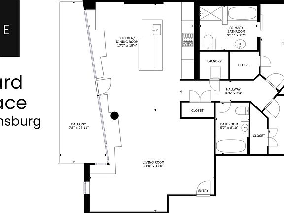 Discover Bayard Terrace, a sleek 2-bed, 2-bath condo loft in Williamsburg, steps from McCarren Park. Spanning 1,368 square feet, this modern residence features an open-concept design with a 410-square-foot terrace and a 70-square-foot balcony, both offering stunning Manhattan and Brooklyn views. Large windows flood the space with natural light, while the spacious living and dining areas connect to the terrace, perfect for entertaining or unwinding. The dining space seats six, and the breakfast bar provides a casual spot for morning coffee.