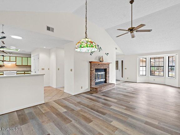 Location, Location, Location! Boasting a dramatic 12' Vaulted Ceiling, Luxury Vinyl Plank Flooring throughout and tons of natural light in its large Sunroom. This custom beauty spells home with a unique bay window and a gas log fireplace in its spacious combined living & dining areas. A classic 12' x 11' Kitchen has a window sink with a new dishwasher, faucet & lighting, granite counters and 2 pantrys. The Sunroom spans 23' in the rear with sliding doors to access its concrete patio for firing up the grill. You'll sleep deeply in the sizable master bedroom knowing that the roof was replaced in 2021 and the heat pump in the same year. 2 guest bedrooms are on the other side of the home, both with 8' closets and a hall bath between them. The laundry room provides access to its over-sized side entry garage with an epoxy floor, attic storage and a stamped concrete driveway. Spotless, well loved with great bones, ready for you to make it your own. Modern landscaping accents the home's curb appeal on nearly a 1/3 acre lot. Nestled in a neighborhood known for its spectacular trees, where walking & bike riding are popular. Enjoy the community pool, tennis, bocce ball & more with low HOA dues. Perfectly situated in the far SW corner of Brunswick County on the edge of the SC line. 5 minutes to groceries, restaurants, medical and boutique shopping. 10 minutes to pristine Sunset Beach and a golfer's paradise in every direction! 30 minutes to Myrtle Beach's entertainment and an hour to historic Wilmington. You'll love living here!