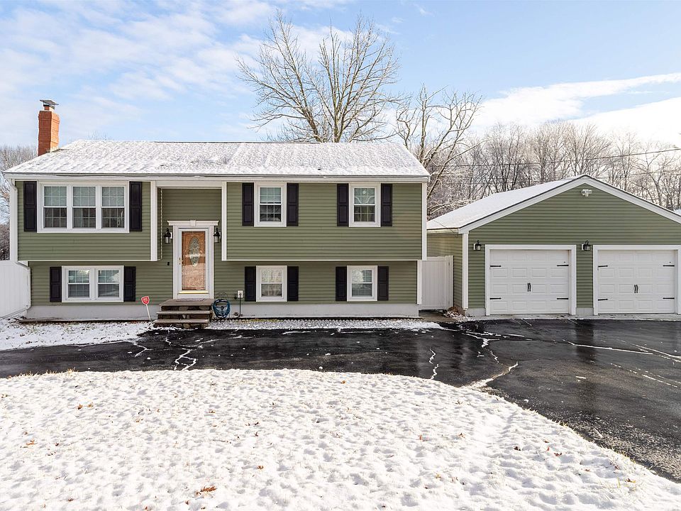 Check out this new home for sale in Derry, NH! This fully updated split level offers the best of locations'; a country setting close to all the area amenities. You will be in awe from the moment you enter the front door. Rise to the first floor living area and be greeted with all the upgrades you want. Sparkling white kitchen cabinets, granite countertops, newer appliances, tile flooring. Open kitchen dining room combo, large living room with vaulted ceiling, 3 bedrooms and updated bath. Step right out onto the deck and overlook the expansive fully fenced in back yard and above ground pool. On the lower level you will find the versatility of an additional room for office space or bedroom use. A front to back family room, with wood stove. All with a half bath and walk out to the back yard. Don't miss the circular driveway and two car garage with storage. This is not a home to miss.