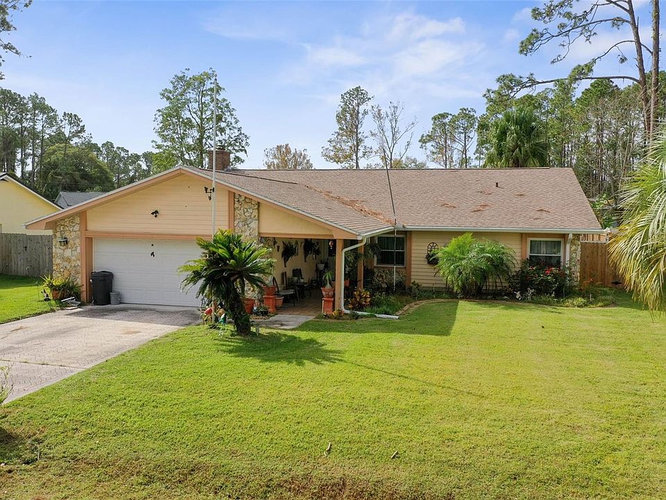 READY TO MOVE IN !!! ASSUMABLE MORTGAGE!!! Welcome to 20 Becket Lane, a spacious and thoughtfully designed home nestled in the Indian Trails neighborhood of Palm Coast, Florida. This 3/2/2 single family residence offers 2,368 square feet of living space, featuring a blend of comfort, functionality, and modern updates. The kitchen is beautifully appointed with wood cabinetry, while the family room boasts a cozy wood-burning brick fireplace and a convenient wet bar. A separate formal dining room and living room add elegance to the layout, complemented by a versatile den with a built-in desk and plenty of storage. No HOA fees. The outdoor space is perfect for relaxation and entertaining, with a covered patio and a fenced yard complete with a storage shed. Recent updates include a new roof installed in 2020, solar panels (BALANCE WILL BE PAID BEFORE CLOSING) for energy efficiency, and a RainSoft water softener. Situated close to shopping, medical facilities, and all the amenities Palm Coast has to offer, this home combines practicality with prime location. Don't miss the opportunity to make this exceptional property your own!