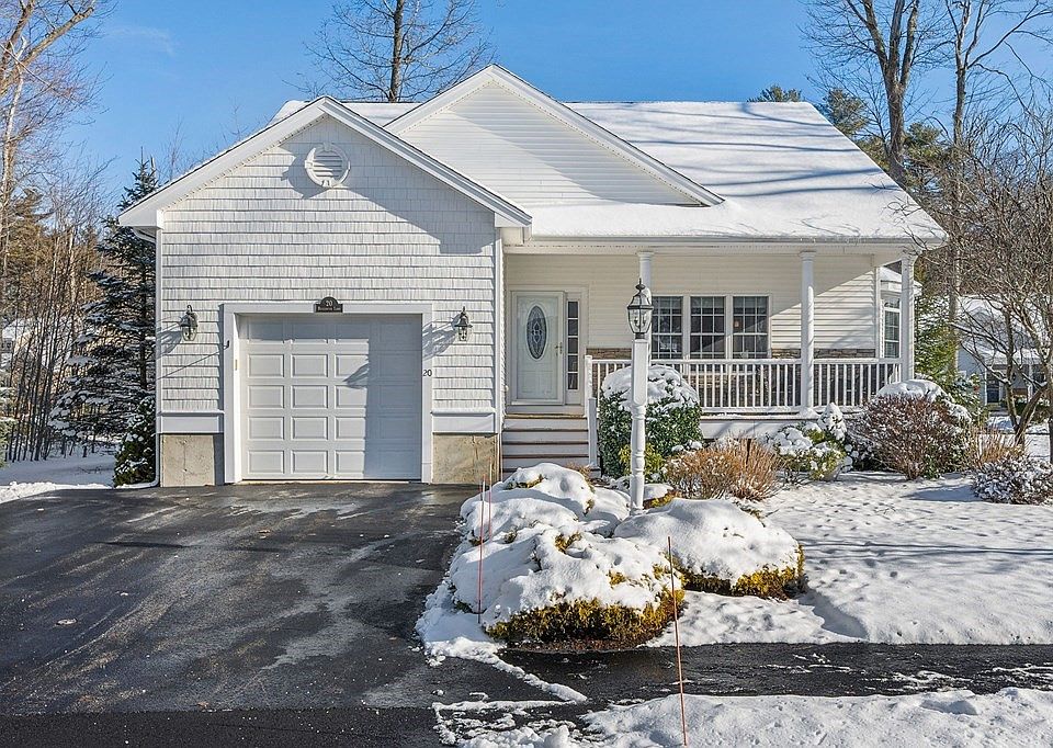 Enjoy easy living in this beautiful one floor, detached single family home, conveniently located in a 55 + community. This 2-bedroom 2 bath home has high end features including eye-catching crown molding and custom wainscoting. Enter the home from the sunny farmer’s porch to a cozy large living rm with a beautiful gas fireplace. Living rm opens to a dining rm enclave and a large kitchen. The kitchen features granite counter tops a peninsular style counter and beautiful cabinets, some with glass. Enjoy the open floor plan, easy maintenance and low condo fee that includes, landscaping, snow and trash removal. The home also features 1st floor laundry and a screened porch to relax and enjoy fresh air while sipping your morning coffee or enjoying an adult beverage in the evening. The large walk-out basement with high ceilings is ready to be finished should add’l living space be desired. You will also find a custom walk-in cedar closet and a new water heater in the lower level.