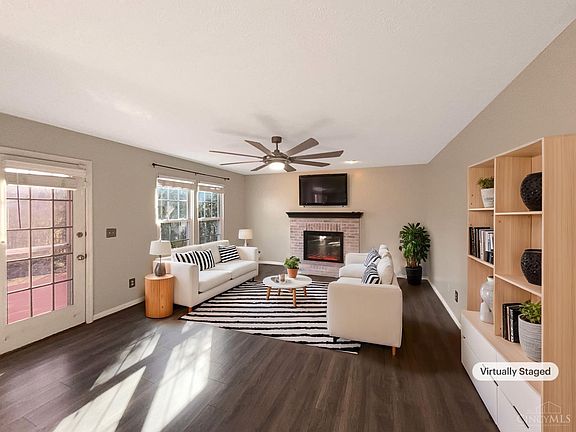Welcome to this charming property that features a cozy fireplace, creating a warm and inviting atmosphere. The natural color palette throughout the home adds a touch of elegance, while the center island in the kitchen provides ample space for meal prep. A nice backsplash in the kitchen adds a stylish touch. The primary bedroom boasts a walk-in closet for all your storage needs. Other rooms offer flexible living space to fit your lifestyle. The primary bathroom includes a separate tub and shower, as well as double sinks and good under-sink storage. Step outside to the fenced backyard with a sitting area, perfect for enjoying the outdoors. Don't miss out on this amazing opportunity to make this house your home!
