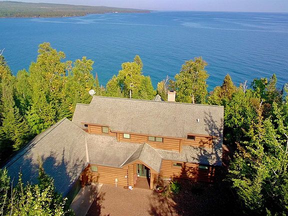Nestled on the stunning North Shore of Lake Superior this luxury cabin embraces the spirit of elegance and comfort in perfect harmony with nature. Open concept rooms invite sweeping views of the lake’s sapphire waters, where the ever-changing light creates a living masterpiece just beyond the windows. Inside, soaring vaulted ceilings and the warmth of in-floor heating beneath hickory wood floors create an inviting haven in every season. The heart of the home is a gourmet kitchen, where polished granite counters meet pecan wood cabinetry, each detail thoughtfully chosen and exquisitely crafted all surrounded by the endless beauty of Lake Superior. Large primary bedroom ensuite with walk-in closet is on the main floor has continued spectacular lake views. Quiet nature abounds, far away from the highway a lgreat place to go on those after dinner walks. More than a home, this three-bedroom, three-bath sanctuary is a place to savor quiet mornings, gather with loved ones, and live immersed in the magic of the North Shore.