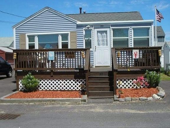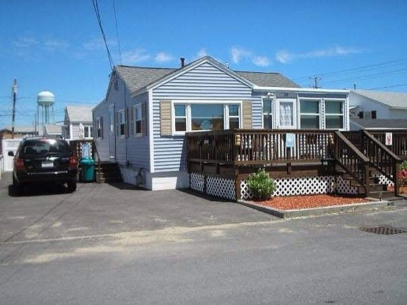 Why buy a condo with all those fees when you can own this charming three bedroom ranch on deeded land with short walking distance to the beach and boulevard? Quiet year round neighborhood. Great location with easy access in and out to Rte 101, Rte 1 and Rte 95. Plenty of parking with two paved driveways which can accommodate 5-6 cars. Storage shed in back yard. Crawl space updated with new pipes and insulated for year round use. Vinyl siding and tilt out windows throughout. Knotty pine, paint and wallpaper interior. Open concept living and kitchen area with counter and stool area for extra dining and food preparation. Newer appliances and water heater. Full size washer/dryer combo in kitchen. New shower and toilet. Sunroom is bright and inviting. Two decks.....one 10'x20' at front doorway which is great for entertaining and watching fireworks....5'x8' deck at side doorway. Most furnishings will be left if buyer desires them.