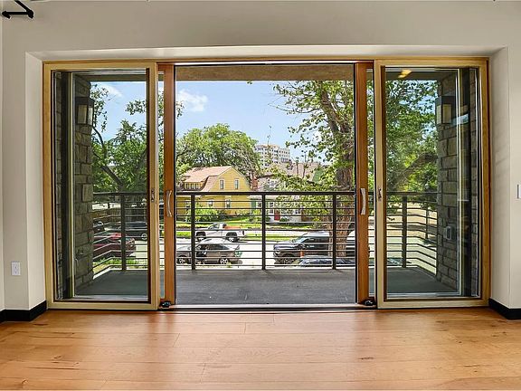 - West facing windows with front range views. South facings sliders opens to balcony and offers street view of cottages and soaring trees.