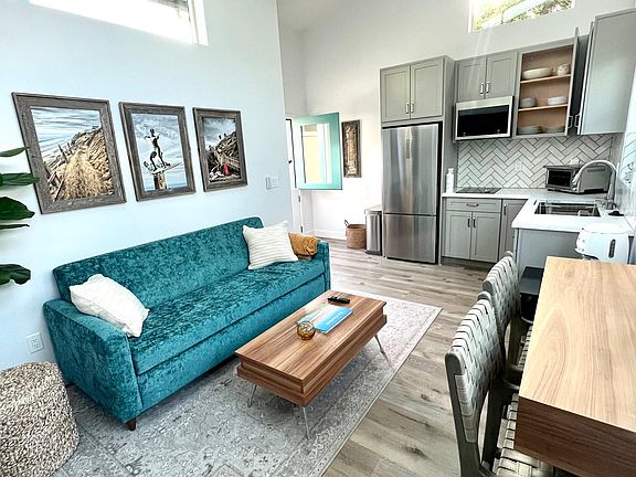 Brand new construction and high end finishes. .5 from Moonlight Beach and Swamis. Lots of light, vaulted ceilings and huge windows looking out at sky (west view for sunset) or tree lined backyard. 560 square foot space includes private outdoor shower, sitting area for sunsets cocktails and a huge loft. Drive up to your door and park in your private parking space. 31 day minimum rental. Across the street from the heart of town, fully furnished, reserved off street parking, utilities, water, cable, internet included. Tenant Review: "It would be an understatement to say that this ADU is all about its location. While you will be living in one of the most highly demanded neighborhoods in north county (walking distance from all restaurants, shops, and beaches mind you), the property owner has left nothing to be desired in this adorable bungalow, making it a reason to move here just in itself. Airy and full of light, in addition to its thoughtful design, this ADU is perfect for anyone who is looking for a homey, yet luxurious, place to stay. My personal favorite amenity is the outdoor shower! A life saver after a day at the beach. L, the property owner, is so sweet and accommodating as well:) Obvious to say, I loved my time here so much and Im sad to leave!" On site parking is included so you never need to worry about parking to get into town or beach..just walk across the street! Owner also pays for water, electricity, super fast Ting fiber internet, cable, heat and A/C.