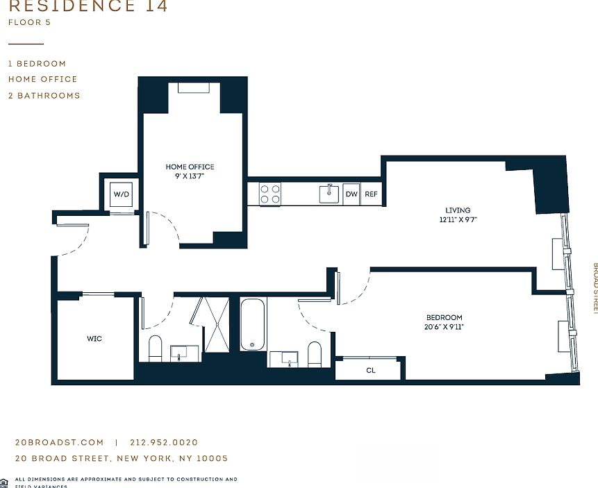 Price shown is Base Rent. Residents are required to pay Application Fee ($20.00, Nonrefundable, One-Time, At Application, Per Leaseholder); Security Deposit (Refundable) (100%, Refundable, One-Time, At Move-in, Per Unit); Utility Electric Third Party (Usage-Based (Utilities), Nonrefundable, Per Month, Monthly, Per Unit). Please visit the property website for a full list of all optional and situational fees. Floor plans are artists rendering. All dimensions are approximate. Actual product and specifications may vary in dimension or detail. Not all features are available in every rental home. Please see a representative for details. Exquisite Manhattan Living at Twenty Broad Now Leasing Studio, One, and Two-Bedroom Residences at Twenty Broad! Unit #1908 is a studio apartment at 20 Broad. Step into a world of sophisticated living at Twenty Broad, where historic charm meets modern luxury. Our stunning apartments feature open-concept layouts with ample closet space, and select units offer home den. All are designed for comfort and style. Originally home to the New York Stock Exchange, Twenty Broad offers a rare blend of timeless elegance and contemporary amenities. Nestled in the heart of the Financial District, the building is surrounded by iconic landmarks like Fraunces Tavern, Federal Hall, the first city firehouse, and waterfront parks, providing a unique living experience at the crossroads of history and modernity. Inside, each residence boasts soaring ceilings, oversized windows that flood the space with natural light, and exquisite luxury finishes. Enjoy meticulously crafted interiors with open-concept designs that seamlessly integrate living and dining spaces. Take advantage of the exceptional amenities, crafted by renowned architects Cetra Ruddy, including a Sky Lounge, Rooftop Terrace, Technogym Fitness Center, Game Room, Lounge, Library, and a dedicated Children's Playroom, all designed to enhance your living experience. Located steps away from world-class dining, shopping, and cultural landmarks and with easy access to transportation, Twenty Broad offers unmatched convenience and a vibrant lifestyle at the heart of one of New York City's most storied neighborhoods. *Photos are of model apartments. Please refer to floor plans for layout variations. **Availability and pricing are subject to change.