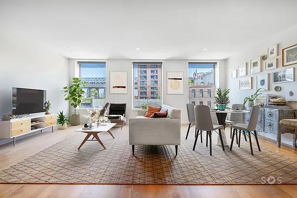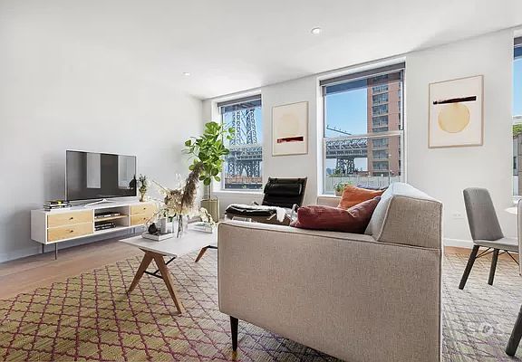 Condo Unit: monthly cc: $888.00; monthly tax: $844.00 This unique industrial loft residency blends timeless features with modern finishes, and a quality build. Initially erected in 1925, the 6-story, pre-war brick building operated as a boutique hotel until its gut renovation in 2005. Now comprised of 14 condo units, each home is defined by spacious great rooms and outstanding views of the Williamsburg bridge. Condo 302 boasts an outstanding floor-through layout with Northern and Southern exposures, from the buildings' front to rear. The interior, encompassing just shy of 1,200 square feet, makes great use of its' space placing emphasis on an oversized living room that nicely fits a dining table, bar stools, and sizable living room furnishings. The master bedroom easily fits a king sized bed with bedside tables and a dresser. The second bedroom is ideal for guests, a child, or an at-home work space. Finishes and appliances in 302 include high profile stainless appliances by Viking and Bosch, a large kitchen island, high ceiling with recessed lighting, large walk-in closet + en-suite bathroom in the Master bedroom, and a south facing balcony. Included with 302 is a private storage room. Located steps from the Williamsburg waterfront, the best of Brooklyn life is right outside your door, with easy access to the East-River Ferry, JMZ train running directly to Manhattan, abundant restaurants, shopping and nightlife venues dotting the neighborhood. This iconic location is a filming-hub and can be recognized in many movies, television series & shows. The area is one among few where residents can see both the Williamsburg Bridge and Freedom Tower as if they were side by side; a truly unique perspective.