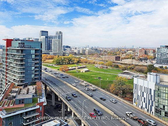 Beautiful waterfront living at The Yards! Bright & spacious 1 bedroom plus den with soaring 9 ft ceilings and ensuite laundry (full-size stacked washer & dryer). Incredible 210 sq ft southwest-facing balcony with breathtaking lake views and stunning sunsets. Includes 1 parking space and 2 storage lockers. Walking distance to waterfront trails, Entertainment District, Financial District, CN Tower & Rogers Centre. Less than 1 minute walk to brand new Loblaws & LCBO. Building offers 24 hr concierge, visitor parking, guest suite, fully equipped gym, steam room, party room, rooftop deck with BBQs & lounge areas, plus library. Location Location Location! Situated in the heart of