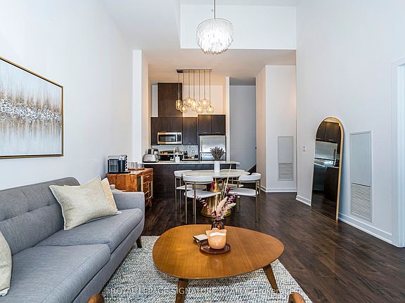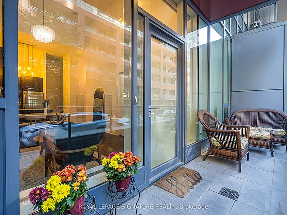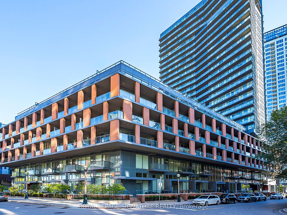 Rarely Offered 3-Bedroom, 3 Full Bathroom Townhome with Soaring Ceilings! Don't miss out on this exceptional opportunity to own a beautifully maintained townhome where each bedroom enjoys its own private or semi-private bathroom offering an ideal layout for both investors and end users. This thoughtfully designed residence perfectly blends comfort, functionality, and refined style. The open-concept main level boasts high-quality laminate flooring throughout, dramatic 15-ft ceilings, and floor-to-ceiling windows that flood the home with natural light. A private patio extends the living space outdoors, creating a welcoming retreat for relaxation or entertaining. The chef inspired kitchen is beautifully appointed with a double undermount sink, quartz countertops, breakfast bar, and sleek cabinetry, making it perfect for both everyday living and hosting guests. The primary bedroom features a 4 piece ensuite, walk-in closet, and a private balcony, creating the perfect blend of comfort and privacy. A versatile den area offers an ideal space for a home office or reading nook. Every detail reflects pride of ownership, from the pristine finishes and beautiful upgraded light fixtures to the automated Hunter Douglas blinds on the main floor and custom blinds on the second level. Residents of this boutique community enjoy a wide range of amenities, including 24-hour concierge service, a fully equipped fitness centre, rooftop terrace, spacious party room, guest suites, media lounge, and visitor parking. The location is unbeatable with easy access to King West, Billy Bishop Airport, and TTC transit at your door, plus nearby parks, waterfront trails, restaurants, and entertainment. Everyday essentials are just steps away, with a Farm Boy up the street and LCBO, Loblaws, and Shoppers Drug Mart conveniently located across the road. The Rogers Centre, CN Tower, and countless downtown attractions are also just minutes from your door.