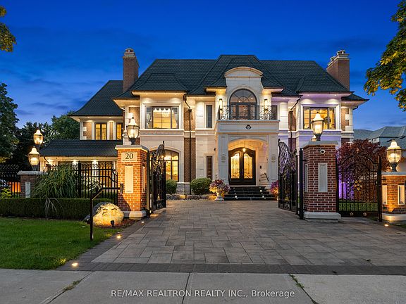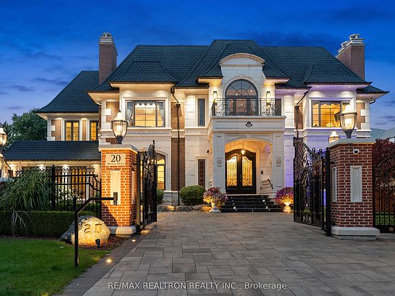 Exceptional Luxury Awaits! Welcome to 20 Bryson Drive, situated on the most prestigious street in South Richvale, Richmond Hill. This is a rare offering featuring an impressive 11,000 square feet of master craftsmanship. Enter through a gated entrance onto a interlocked circular driveway, leading to a home equipped with cutting-edge smart home technology. The main level, pool area, lower level, and bathrooms boast heated flooring. An elevator provides convenience, while a 20-seat, three-tiered movie theatre with a projection system and speakers offers cinematic experiences.Enjoy year-round relaxation in the full-size indoor swimming pool and hot tub, both enhanced by 20-foot-high ceilings, skylights, and illuminated lighting. The backyard is an entertainer's paradise, featuring extensive stone tile interlocking, a large covered veranda patio accessible from the kitchen, family room, and indoor pool area, and a spacious pergola with automated retractable coverings. The custom-built loggia, complete with folding patio doors, hosts a fully equipped outdoor kitchen, oversized wet bar, and entertainment center. Relax by the gas fire pit or enjoy movies in the backyard courtyard with its own projection system. The expansive second-floor terrace offers multiple walk-outs, providing even more space for outdoor enjoyment. **EXTRAS** GOURMET CHEF'S KITCHEN W/ PREP KITCHEN + W/I FREEZER. HEATED FLOORING ON MAIN LEVEL/ POOL AREA/ LOWER LEVEL + WASHROOMS** ELEVATOR*~INSPIRING HAND CRAFTED CENTER HALL STAINED GLASS SKYLIGHT!~ GOLF SIMULATION SYSTEM, WET BAR + WINE CELLAR