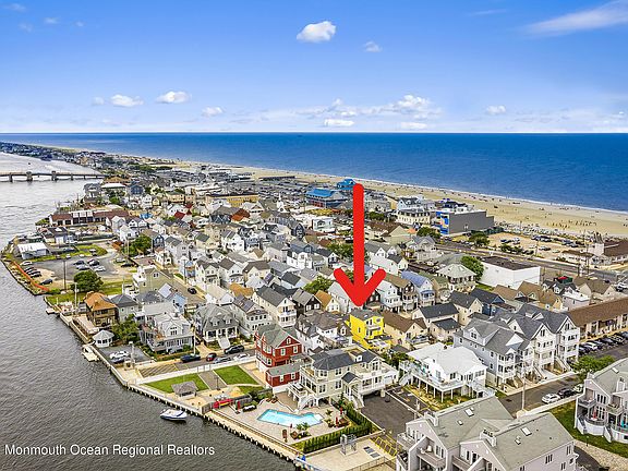 SHORT TERM RENTAL! Beautifully fully furnished 3 bd, 2.5 ba WINTER rental in the heart of Sea Bright. This home has so much to offer, open concept kitchen w/gorgeous granite counters, amazing stainless steel appliances-yes a warming shelf above the restaurant quality 6 burner+griddle range, wet bar & beverage fridge. Imagine your morning coffee on the 3rd floor balcony looking at the ocean & river or sitting on the back deck under the pergola at the family table. 3 car driveway, 2 parking permits from the town to park on the street. Storage for your bikes below the house, a magical ''grotto'' under the deck. Walk to the beach, it's just down the street, delicious restaurants & fun bars. This is a family home to be enjoyed & bonus, it sleeps 10+ w/extra pull out bed.