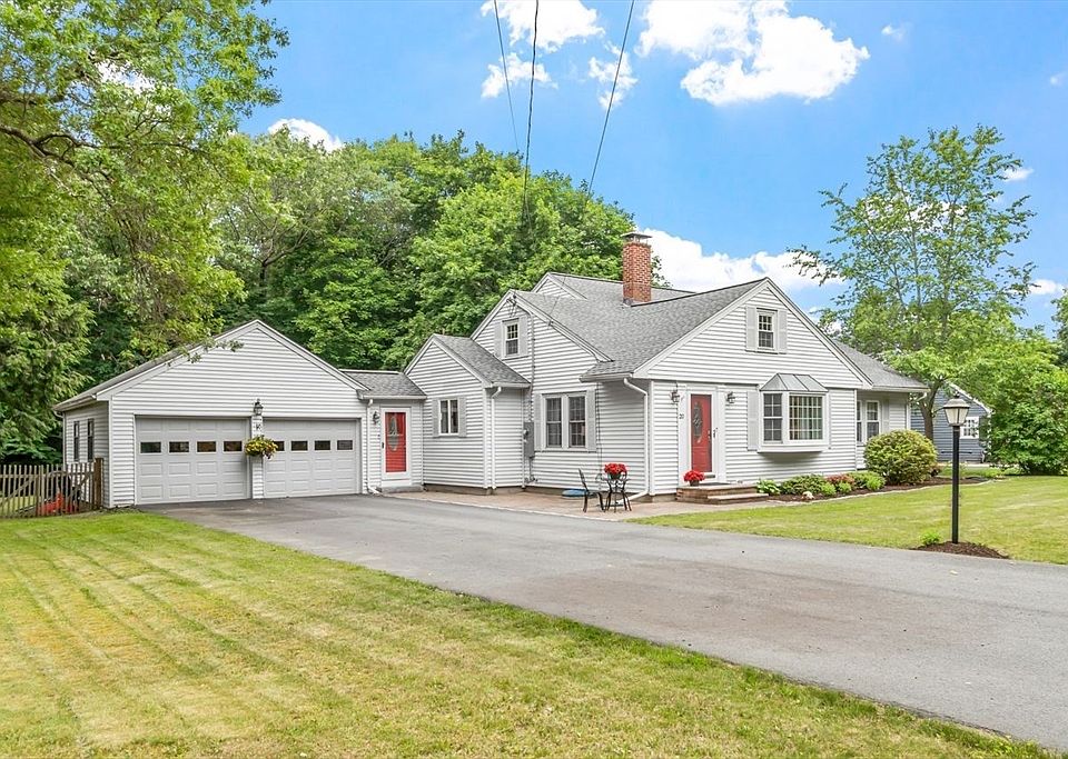 Charming Cape with 4 bedrooms and 2 full baths on a picture-perfect lot with a beautiful fenced yard! Nicely updated and cared for with hardwood floors throughout. This home has 2 generous bedrooms upstairs, one being the Primary with walk-in closet and built-in drawers, along with a full bath, laundry and a bonus room currently used for exercise space. Main level has a spacious Living Room with a wood-burning fireplace & built-ins on either side. LR flows nicely into the Kitchen and Dining rooms along with 2 additional bedrooms and a second full bath. Great to have a first floor bedroom option! The sunny Kitchen with breakfast area has stainless appliances and granite counters with direct access to the private yard & newer composite deck that overlooks the tranquil outdoor space. LL has a finished heated room that can be used for home office or craft room. 2 car attached garage w/ mudroom too! Right down the street from the new West Elementary school with parks and shopping nearby!
