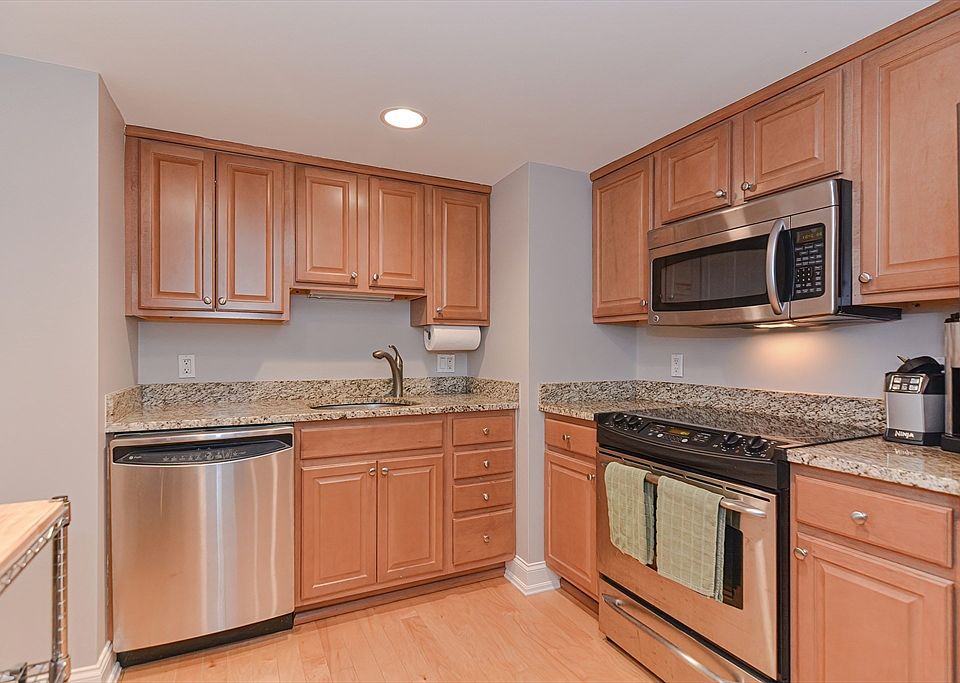 - Features: Flooring - Wood, Countertops - Stone/Granite/Solid, Recessed Lighting, Stainless Steel Appliances