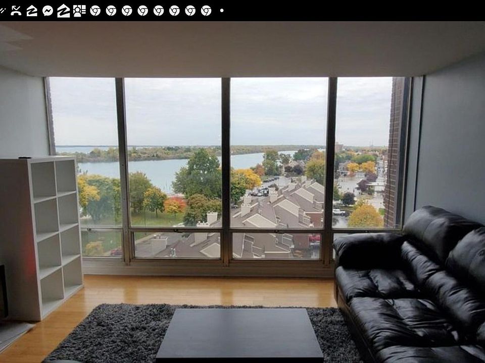 Electric fireplace in living room ,hardwood floors, inside garage parking and storage unit . 9th floor unit with beautiful view of Detroit River,Canada, and Downtown Wyandotte .located in Downtown Wyandotte, four blocks from Wyandotte Hospital walking distance to all restaurants and shopping. directly across the street from Bishop Park and the Fishing Pier.