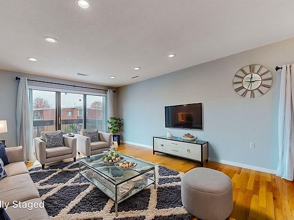 The property features two bedrooms and one bathroom. The open-concept layout combines the kitchen and living room, creating a spacious feel. Being the top floor unit, the ceilings are slightly higher and elevated towards one side. Throughout the apartment, gleaming hardwood floors add warmth and elegance. The kitchen boasts modern white cabinetry, laminate countertops, and stainless steel appliances, including a built-in microwave. The galley-style layout maximizes efficiency while providing ample storage and counter space. The living area is bright and inviting, with recessed lighting and a sliding glass door leading to a balcony, offering views of the surrounding area and allowing natural light to flood the space. The bathroom is pristine, with white fixtures, a combination tub and shower, and a vanity for storage. The master bedroom also features a walk-in. Buyer and buyer agent to do their own due diligence. Offer due on Monday 05/05 at 3pm and please make it good for 12pm Tuesday.
