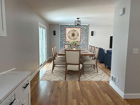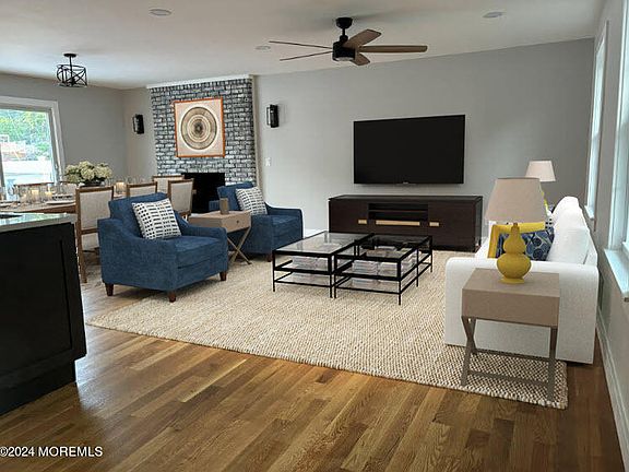 Renovated like new. 4 bedroom 3 full baths in Shark River Hills. 2 blocks from the river. This home has been renovated from the frame. New insulation, drywall, real hardwood flooring and good quality finishes. This house has it all. Primary bedroom with vaulted ceilings, open floorplan with a fireplace in the dining room, wet bar with refrigerator in the living room, fenced yard with an inground pool and a two car garage.
